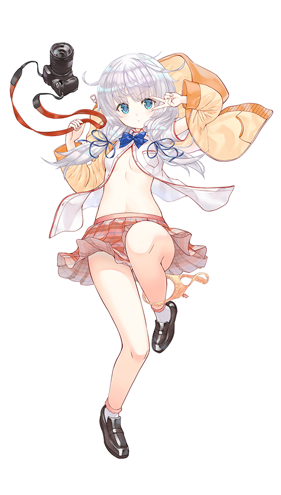 She usually wears her school uniform with an orange bunny hoodie over the top.
